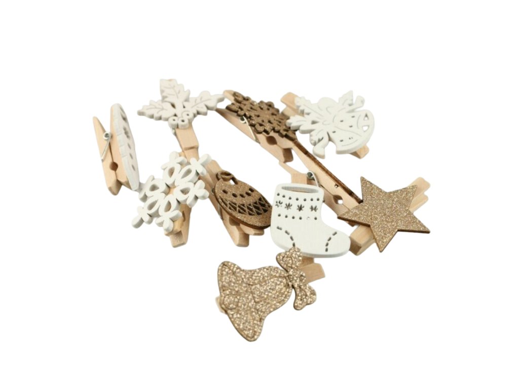 Dekorácia klip drevený 10ks