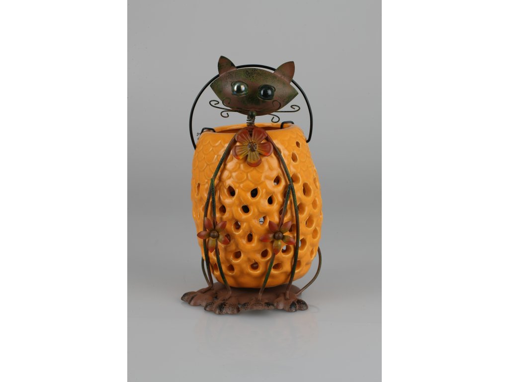 Kov.keram.mačka oranžová lucerna