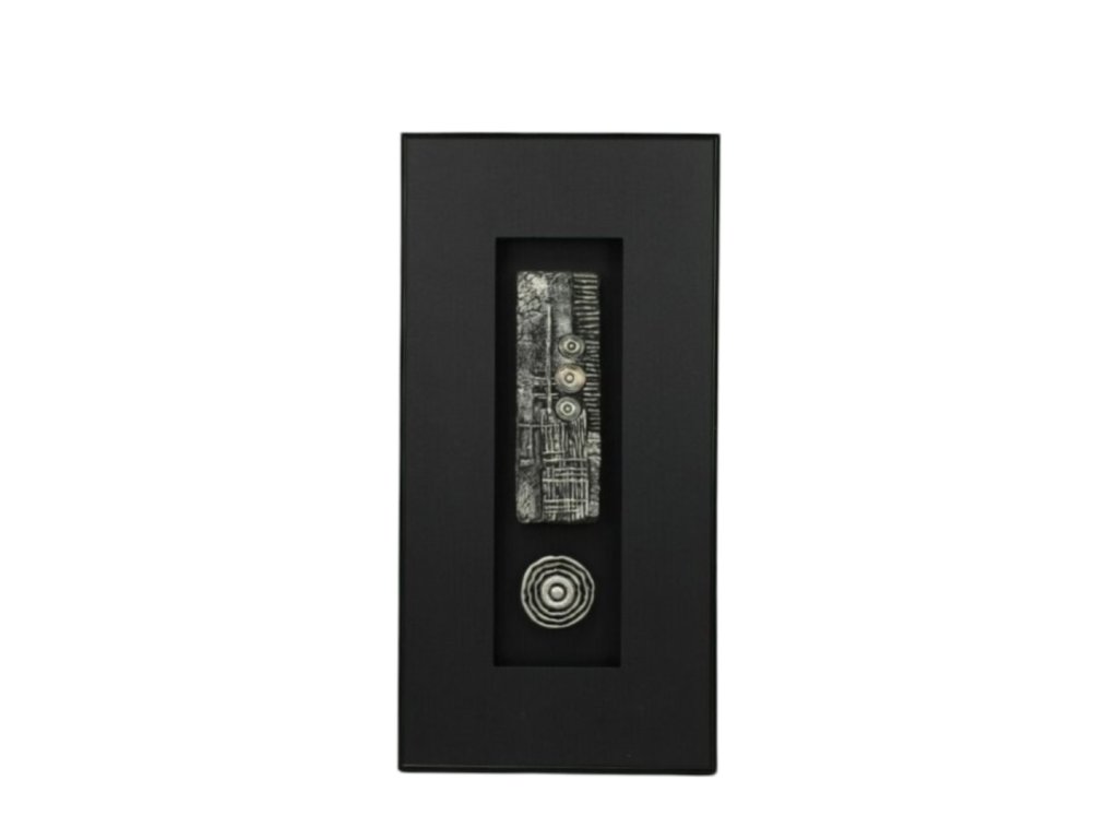Moderný obraz v úzkom vertikálnom formáte s 3D kamenným reliéfom v industriálnom štýle. Elegantná čierna konštrukcia zvýrazňuje štruktúru strieborného dekoru. Vhodný ako doplnok do moderných a minimalistických interiérov.