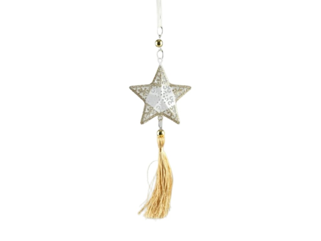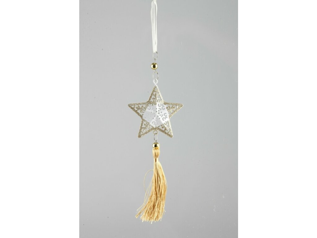 Ozdoba hviezda kovová bielo-zlatá 8x20cm