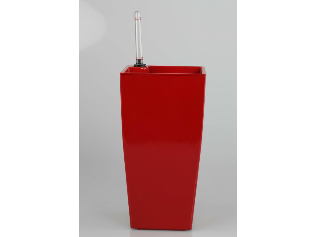 Plastový kvetináč lesklý červený 14x14cm v.26cm