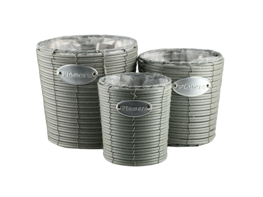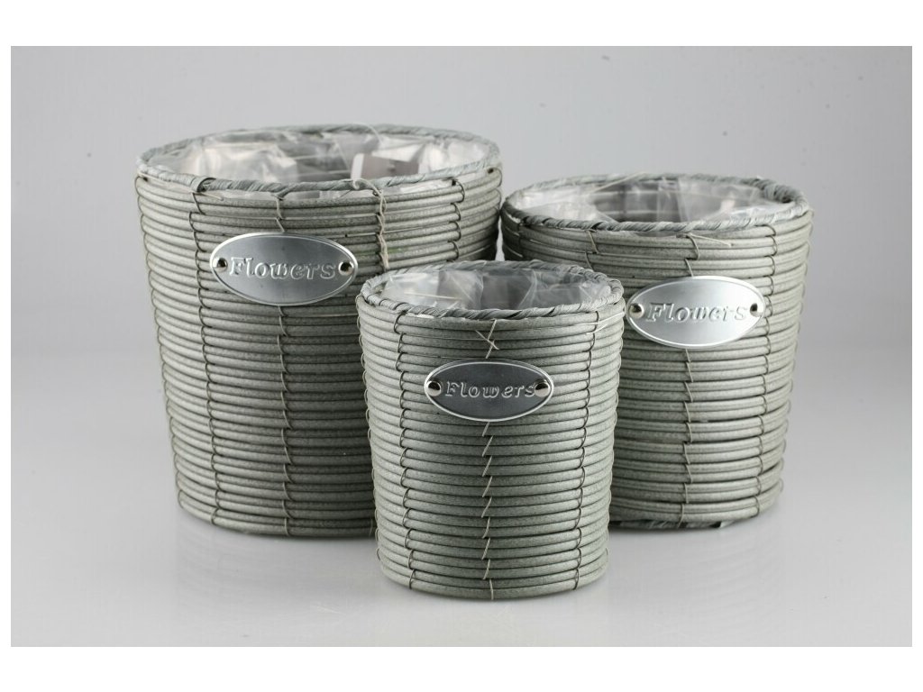 Prútené kvetináče sivé bal/3 pr.24/20/16cm v.25/21/19cm