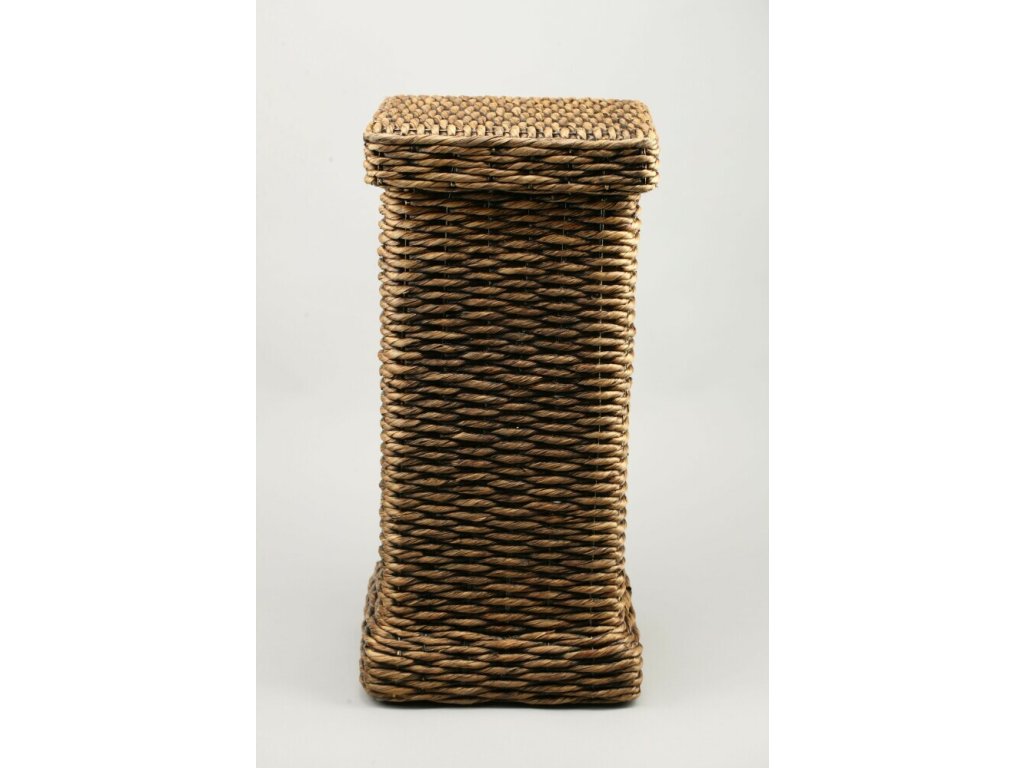 Tento stojan z ratanu má výšku 70 cm a priemer 34 cm. Je vyrobený z prírodného ratanového výpletu v teplých hnedých odtieňoch, ktoré dodávajú výrobku rustikálny a prírodný charakter.