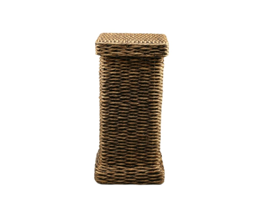 Konštrukcia je pevná, so štvorcovou hornou časťou a jemne rozšírenou spodnou základňou pre lepšiu stabilitu. Vďaka svojmu dizajnu sa hodí ako dekoratívny aj praktický doplnok – môže slúžiť na odkladanie kvetináča, ako podstavec pre sochu, vázu alebo iný výrazný interiérový prvok.