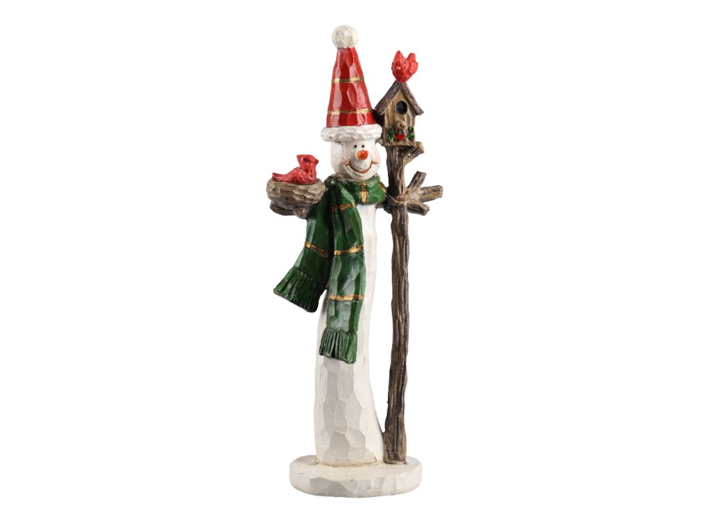 dekorácia - postavička snehuliaka s vtáčikom a búdkou