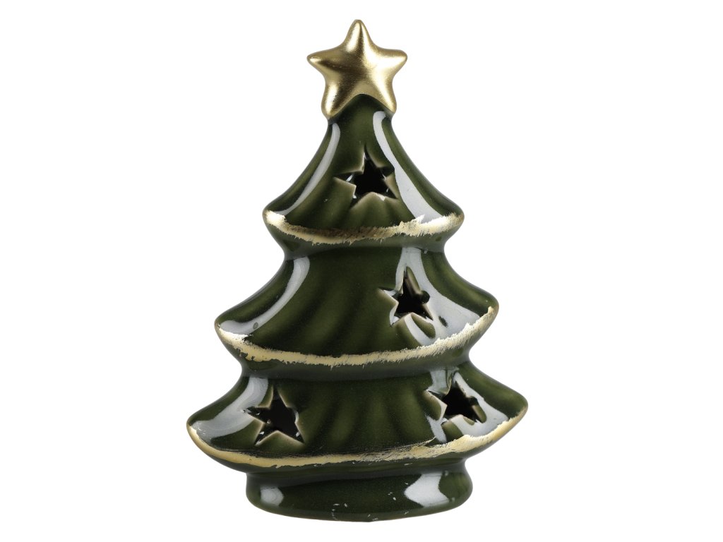 keramická LED dekorácia – vianočný stromček so zlatými detailmi