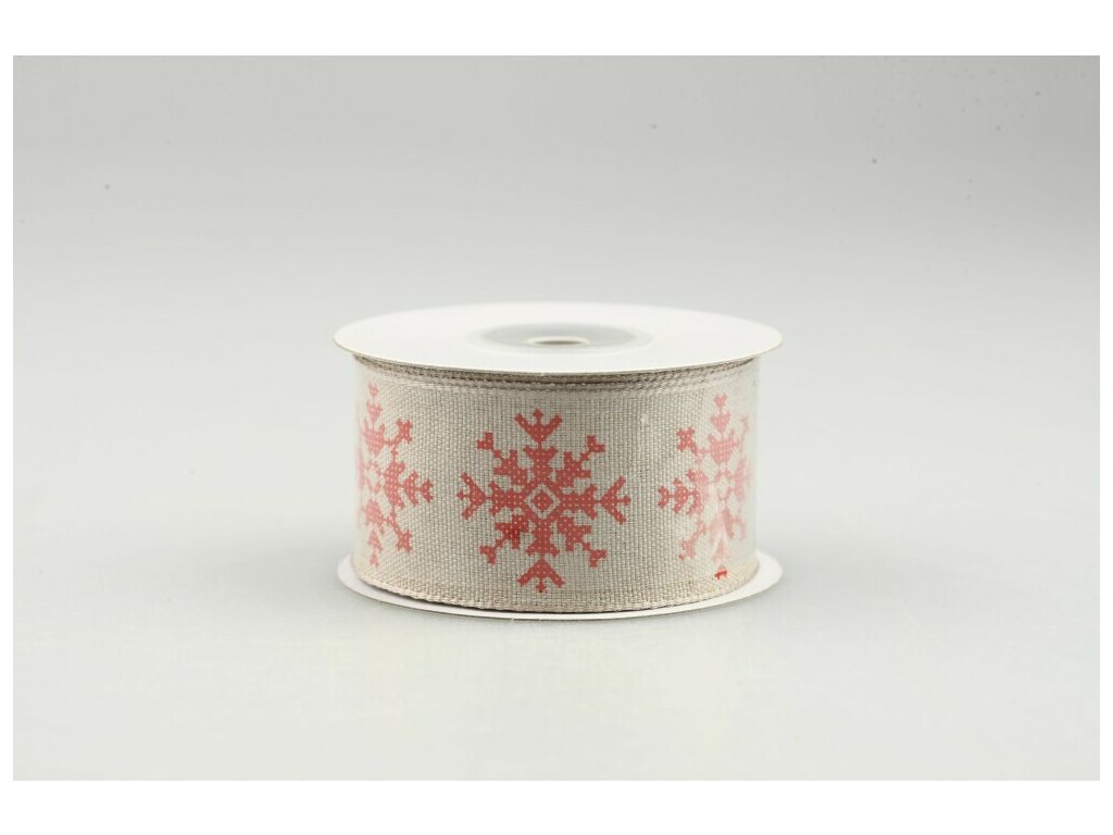 Stuha R vločka červeno-krémová 4cmx9m