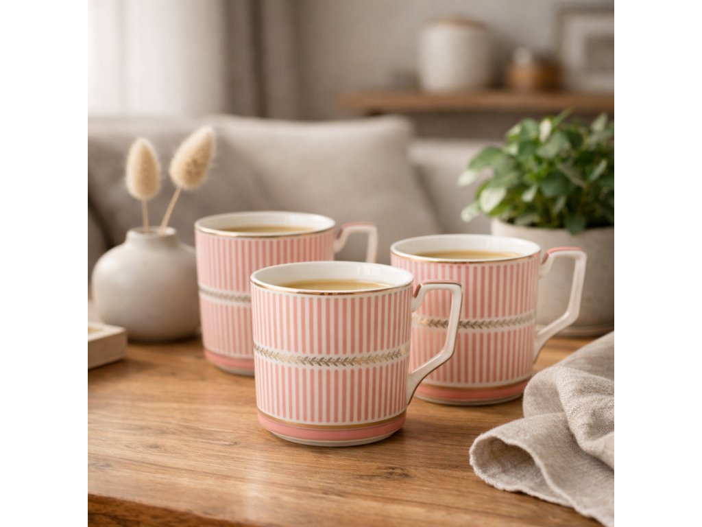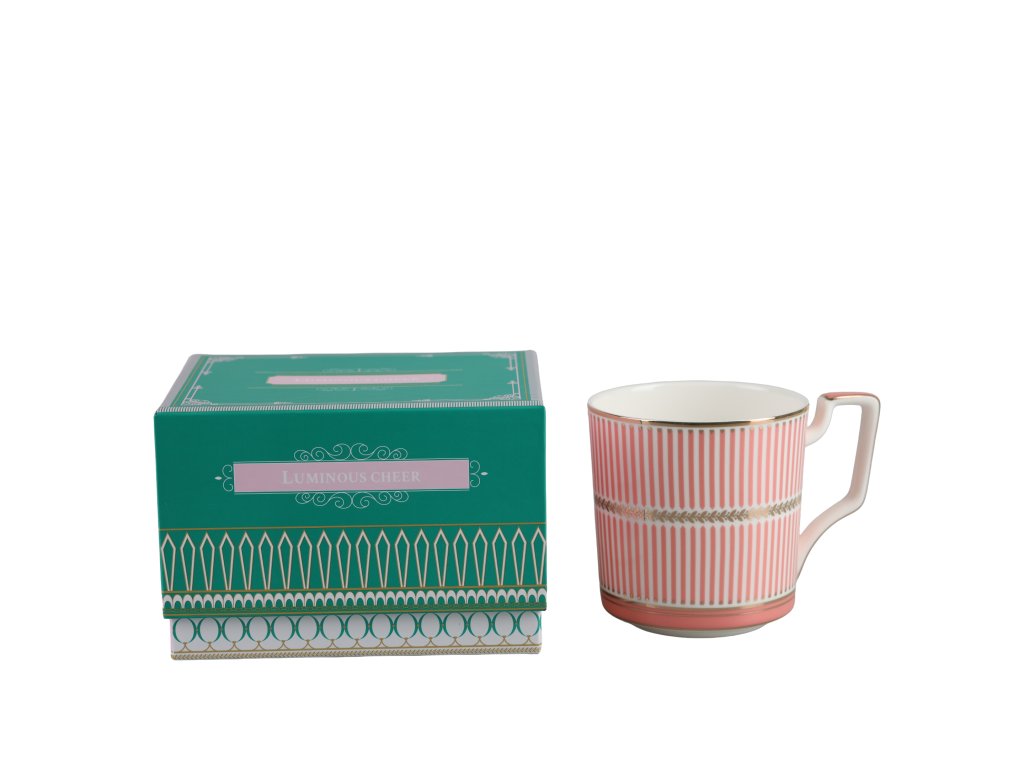 Dodajte svojmu rannému rituálu eleganciu s týmto štýlovým porcelánovým hrnčekom v ružovo-bielom dizajne. Jemný, tenkostenný porcelán pôsobí ľahko a luxusne, zatiaľ čo zlaté detaily dodávajú hrnčeku výnimočný a noblesný vzhľad. Ideálny na obľúbený čaj či kávu. Hrnček je balený vo vkusnej darčekovej krabičke, ktorá ladí s jeho dizajnom – vďaka tomu je skvelým tipom na darček pre rodinu, priateľov aj kolegov.Dodatočné parametre