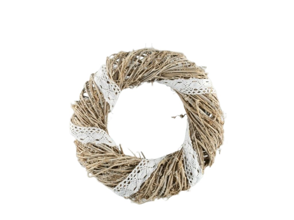 Veniec DD prútený s bielou krajkou 32cm