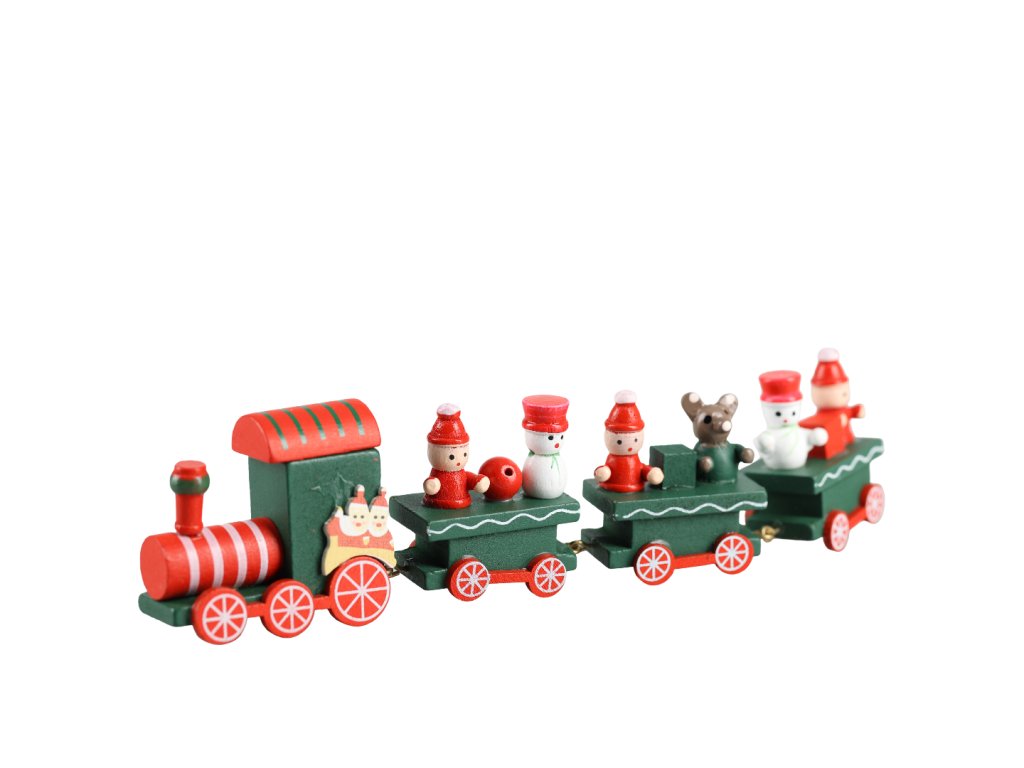 Rozkošný vianočný drevený vláčik s troma prepojenými vagónmi, ktorý prinesie do vášho domova tú pravú sviatočnú atmosféru! Vláčik je vyrobený z kvalitného dreva a maľovaný v typických vianočných farbách – červenej, zelenej a bielej.
